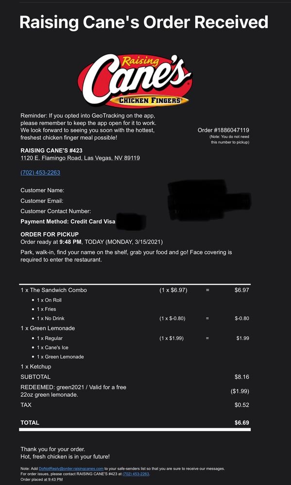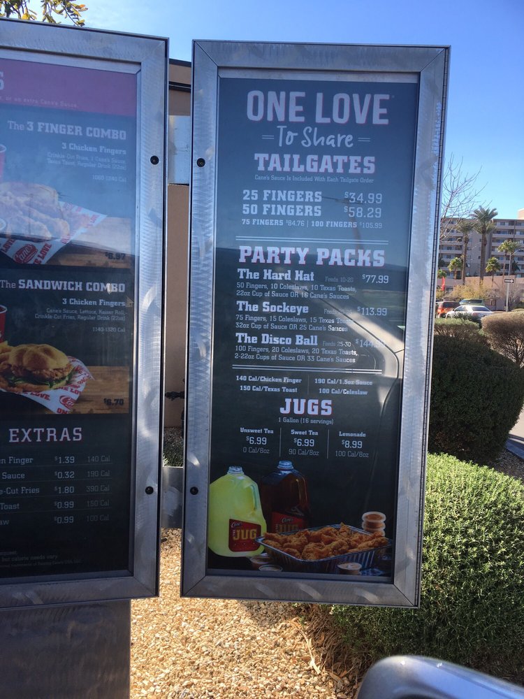Raising Cane’s Chicken Fingers, located in Las Vegas, offers a variety of mouth-watering options perfect for both lunch and dinner. The menu features combos like the Caniac Combo with 6 chicken fingers, coleslaw, Texas toast, and a large drink, as well as the Box Combo and 3 Finger Combo. Customers rave about the tender and flavorful chicken fingers, delicious Cane's sauce, and fresh coleslaw. The clean and welcoming atmosphere, along with excellent customer service, enhances the dining experience. With options for takeout, catering, and drive-thru service, Raising Cane’s is a convenient choice for families, groups, and individuals looking for quality fast food. Don’t miss out on their famous lemonade and refreshing sweet tea to complement your meal.